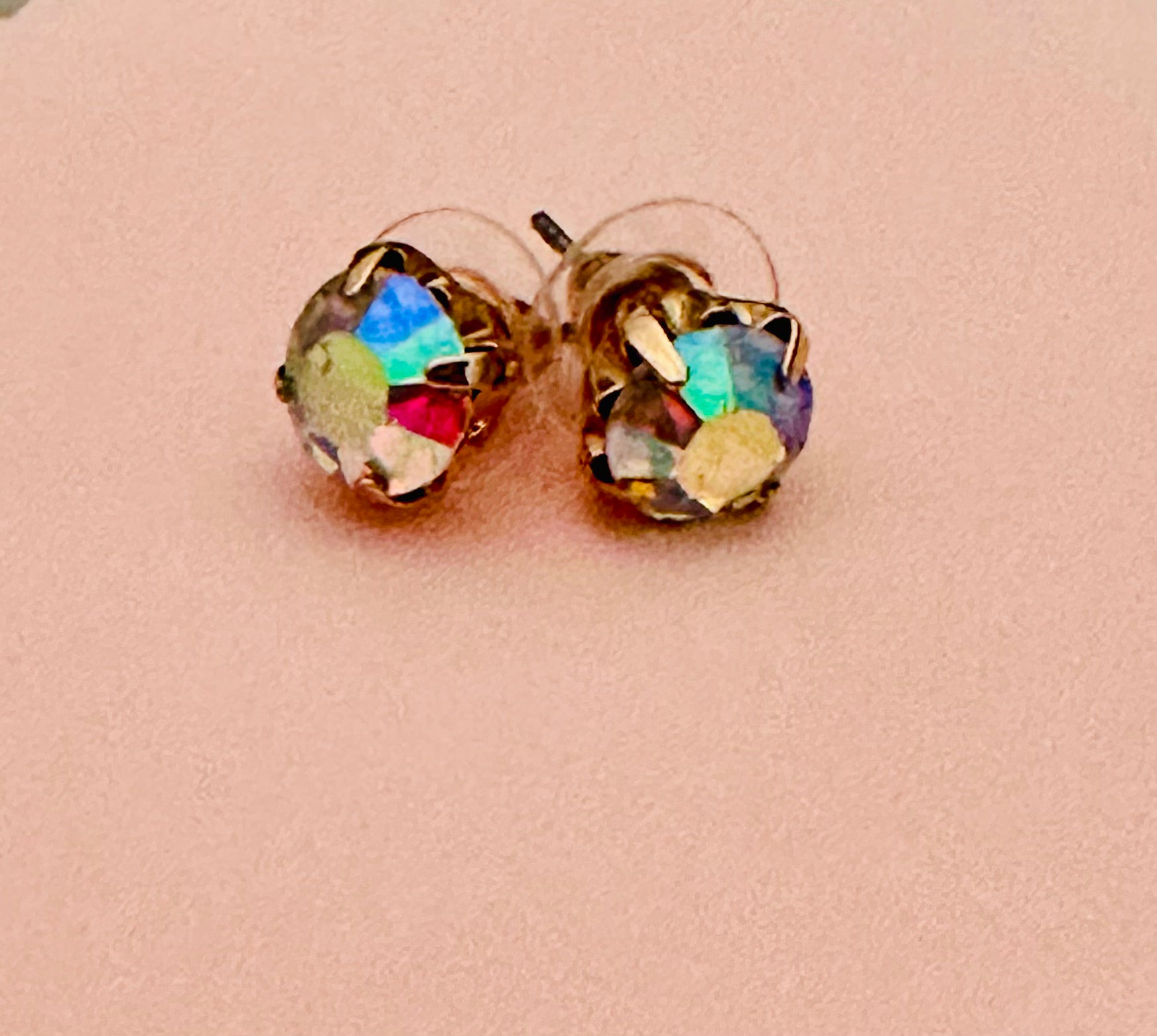 Tiny but mighty! These iridescent studs shimmer