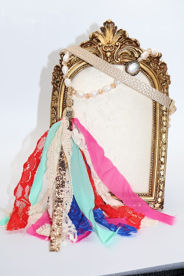 Celebrate vibrant energy and effortless style with the Carnival Breeze Necklace. Featuring a cascade of colorful fabric ribbons, accented by shimmering pearl-like beads and a delicate gold chain, this piece exudes playful sophistication. Perfect for adding a lively flair to any outfit, it’s a statement accessory that captures the joy of movement and freedom