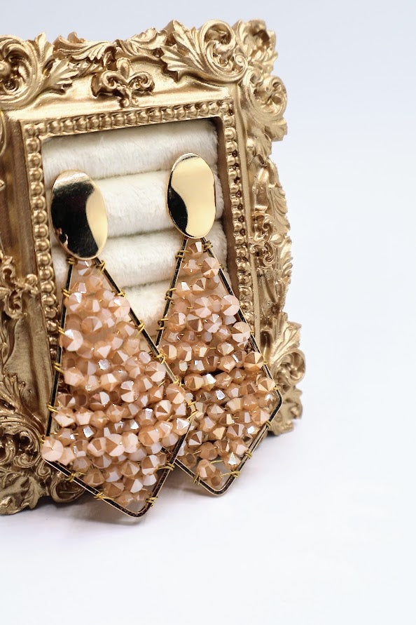 Toast to style with our Champagne Sparkle Drops! These exquisite earrings feature a sophisticated geometric design adorned with radiant golden beads that mimic the effervescence of bubbly champagne. The delicate gold accents add an extra touch of elegance, making these earrings perfect for any occasion—from cocktail parties to elegant dinners. Lightweight and versatile, they effortlessly elevate both casual and formal outfits. Embrace the sparkle and let your style shine like a toast to the good life!