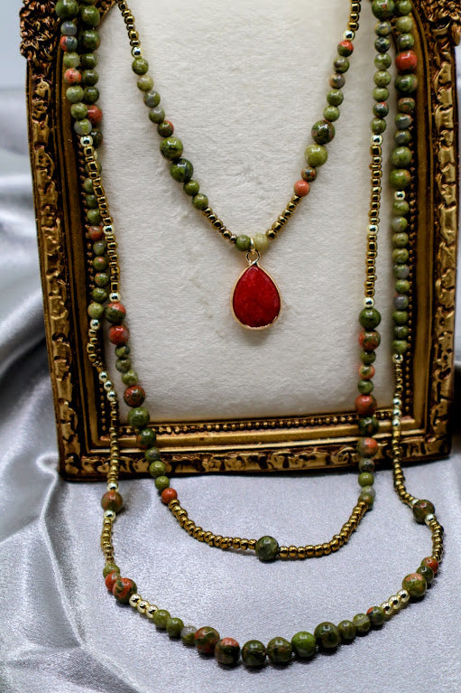 Celebrate your free spirit with the Festival Vibes Layered Necklace. This stunning three-layer design features a blend of shimmering gold chains and vibrant stone beading, perfect for adding a touch of bohemian flair to any outfit. The shortest layer is adorned with a charming dangle pendant, creating a playful yet elegant look. Measuring 14 inches from the top of the longest layer with a 2-inch extender, this necklace offers versatile styling options. Ideal for layering or wearing solo, it embodies the carefree essence of festival season. Elevate your accessory game with this captivating piece!