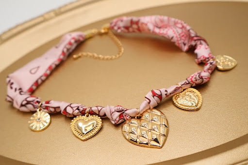 Elevate your accessory game with our Heartfelt Charm Fabric Necklace!