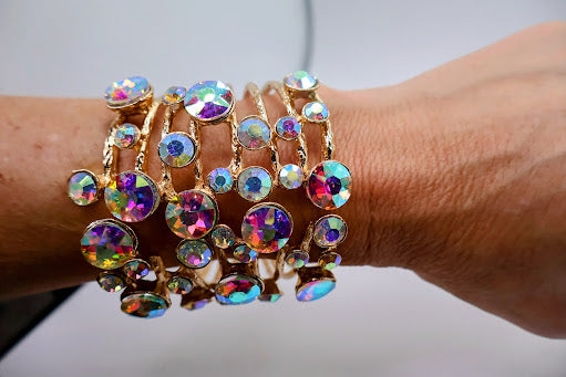 This stunning bracelet features an array of shimmering bubble stones that catch the light beautifully, creating a dazzling effect. The unique design with a hinged closure ensures a comfortable fit while adding a touch of elegance to any outfit. Perfect for both casual and formal occasions, this bracelet is a versatile accessory that will elevate your style effortlessly!